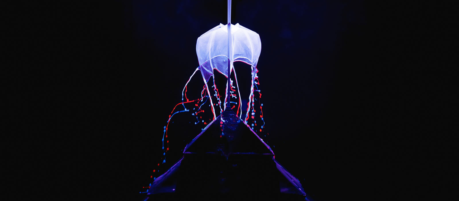 À l’instar d’un cabinet de curiosités avec ses naturalia animales et végétales, l’installation Pulse propose au public de découvrir des formes éphémères et organiques inspirées des célèbres planches du biologiste Ernst Haeckel. Radiolaires, éponges, méduses, servirent de répertoire de formes à partir desquelles Tristan Ménez sculpte de nouvelles formes, travaille à un imaginaire à la frontière de l’imagerie scientifique, du fantastique et l’histoire des curiosités naturelles.