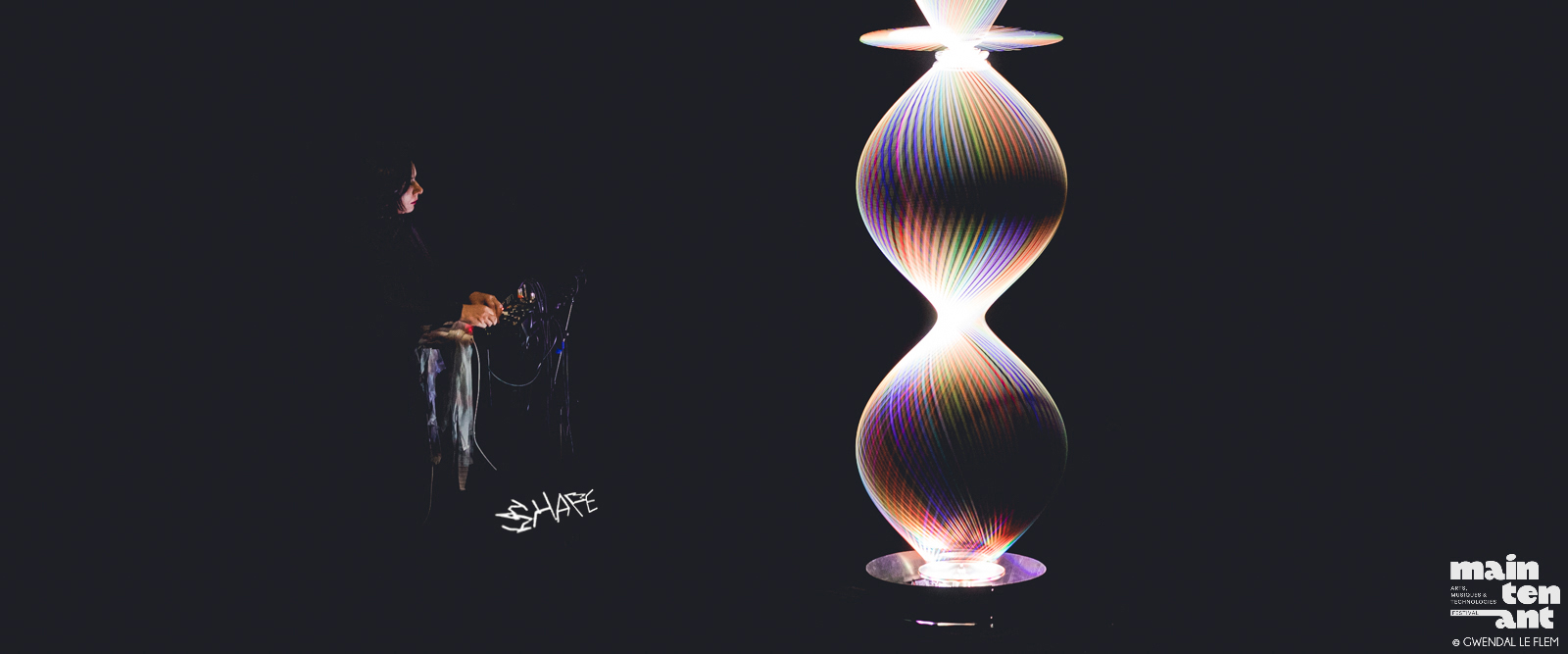 Au croisement de l’art et des sciences, le travail de la sculptrice et performeuse italienne Michela Pelusio* joue avec l’exploration de la perception humaine. Sous l’impulsion d’un mouvement rotatif, des sons, de la lumière et des gestes de l’artiste, un objet vertical s’anime, puis se transforme en une sculpture cinétique géante et translucide. Semblant sortir d’une autre dimension, des vagues géantes et hypnotiques, presque immatérielles, ondoient et s’élèvent en d’incessantes inflexions lumineuses. Inspirée par la physique quantique et la notion d’infini, SpaceTime Helix altère notre perception de l’espace, du temps et de la matière, et trouble notre rapport à la réalité.