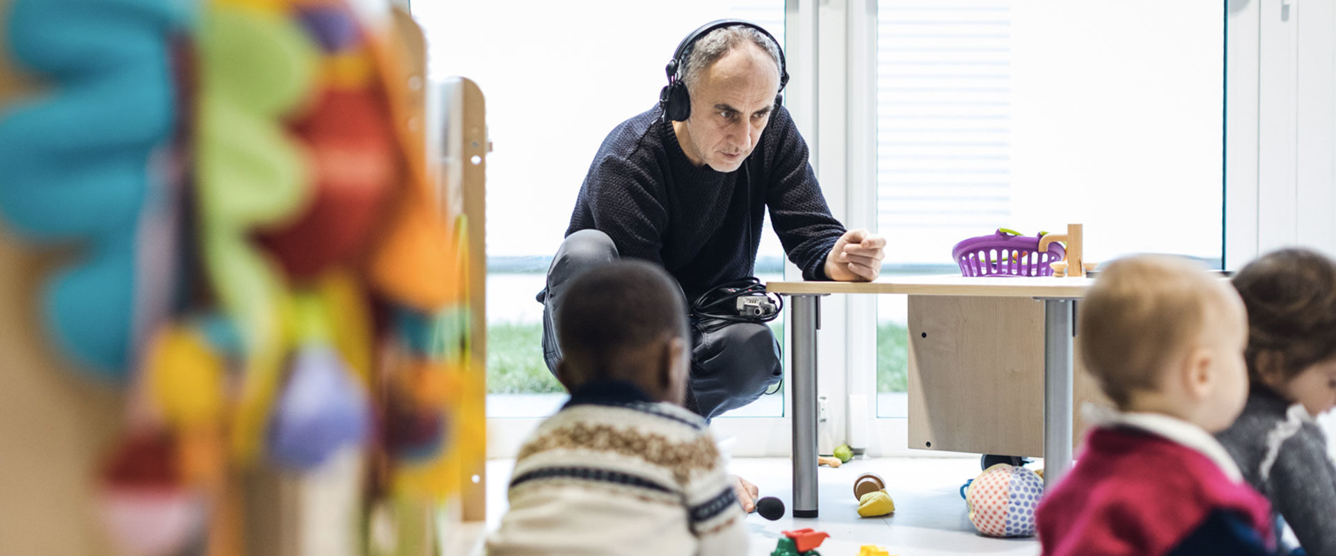 Plusieurs micros en main, il a recueilli de la matière sonore pendant 3 jours. Bruits ambiants, voix d’enfants ou du personnel, seront assemblés et travaillés pour composer une restitution originale de ce lieu de travail et de vie.